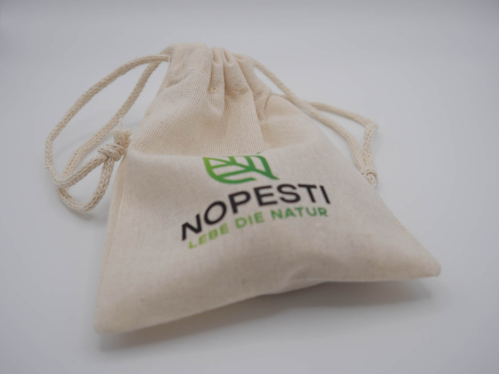 Schützen Sie das Produkt vor Nässe und Feuchtigkeit da es aus Holz und Kork besteht. Es darf nur in trockener Umgebung platziert werden. Es wird angeraten, das Produkt geschützt vor dauerhaften Sonneneinstrahlungen zu lagern. Am besten wird NOPESTI Wespenweg im mitgeliefertem Baumwollsäckchen transportiert.