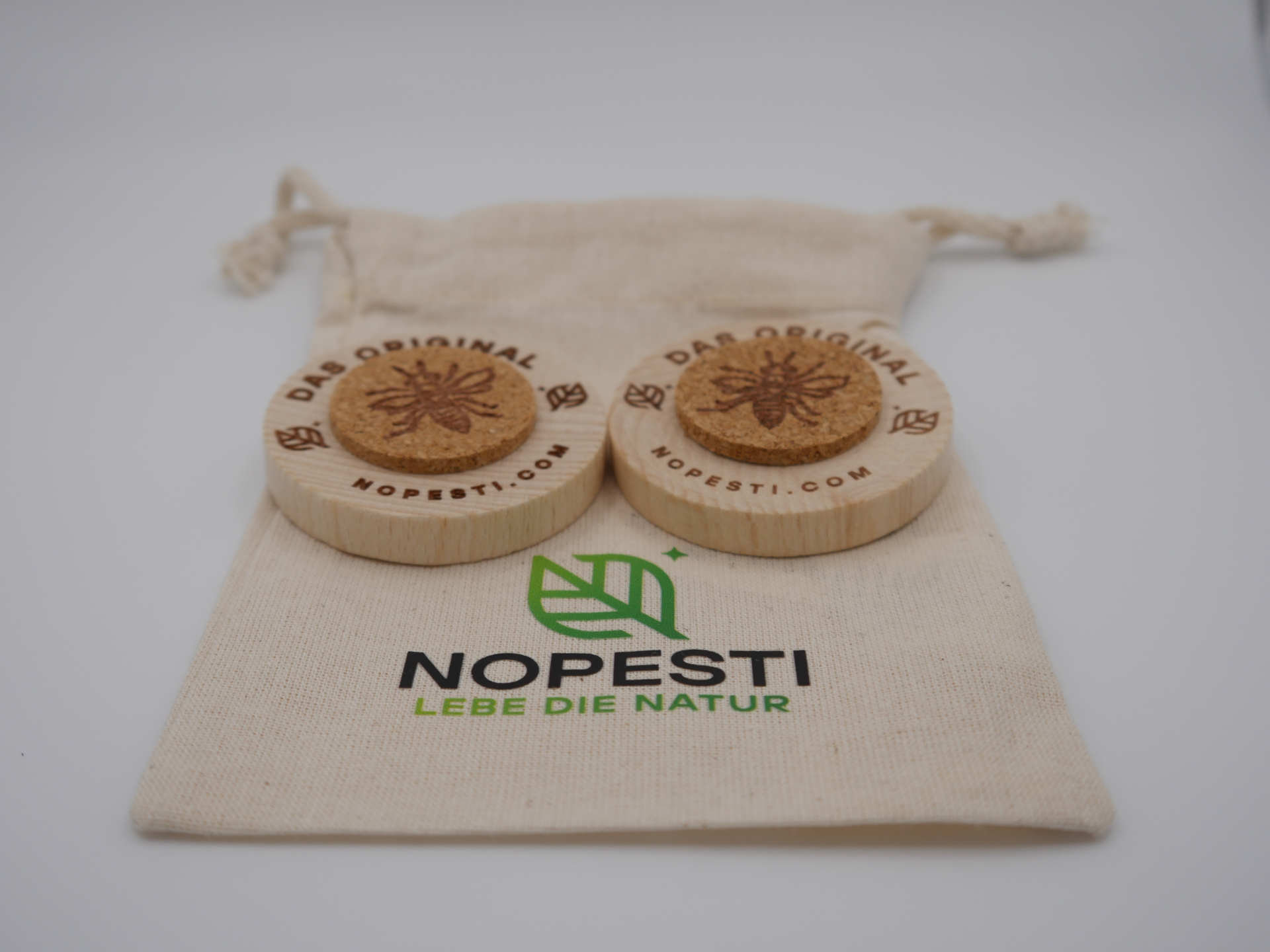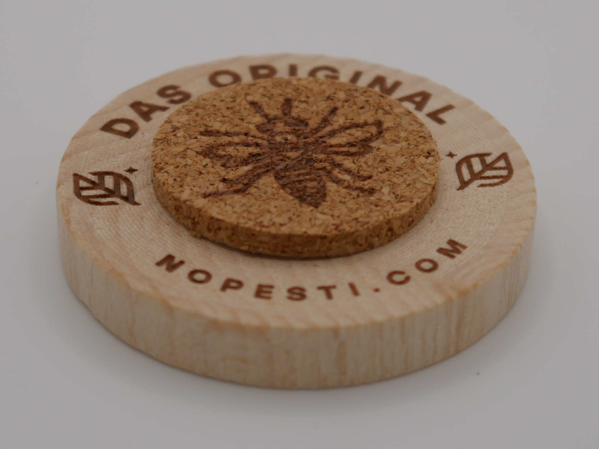 NOPESTI Wespenweg ist ein natürliches und giftfreies aus Holz und Kork gefertigtes Naturprodukt. Der spezielle Aufbau, die Form und die eingesetzten Materialien verleihen dem Produkt eine feinstoffliche Frequenz, welches die Wespen unter normalen Bedingungen vertreiben oder zumindest in einen friedlichen Zustand versetzen.